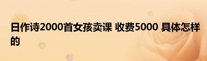 大家好.我是互联百科的羽儿,现在为大家解决以上日作诗2000首女孩卖课 收费5000 具体怎样的的问题.