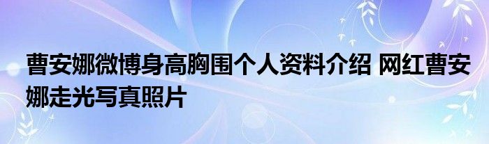 大家好.我是互联百科的羽儿,现在为大家解决以上曹安娜微博身高胸围个人资料介绍 网红曹安娜走光写真照片的问题.