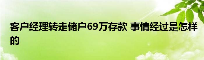 大家好.我是互联百科的羽儿,现在为大家解决以上客户经理转走储户69万存款 事情经过是怎样的的问题.