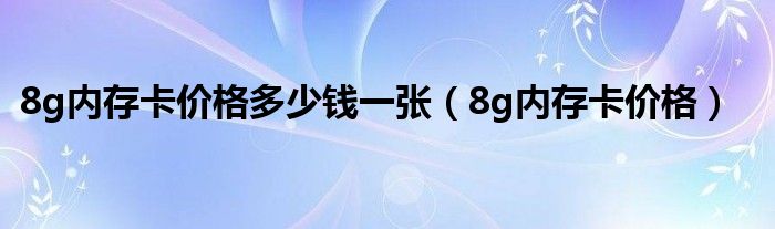 1、导语:我们现在越来越依赖手机。在我们的生活中,我们使用手机进行一些娱乐活动。我们的手机一般内存都很少,所以会买一个内存卡来扩充手机的容量。一张8G的内存卡就够了,但是你知道一张8G的内存卡要多少钱吗?今天就来了解一下8G内存卡的价格吧。
