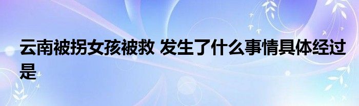 大家好.我是互联百科的羽儿,现在为大家解决以上云南被拐女孩被救 发生了什么事情具体经过是的问题.