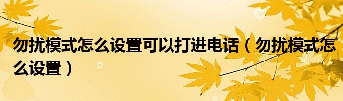 勿扰模式怎么设置可以打进电话(勿扰模式怎么设置)