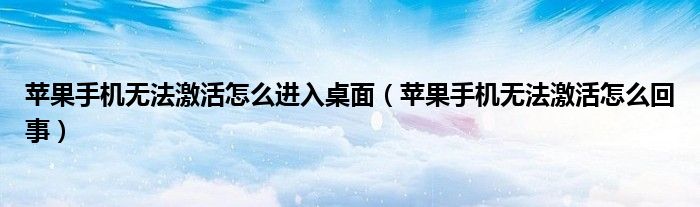 关于苹果手机无法激活怎么进入桌面,苹果手机无法激活怎么回事这个很多人还不知道,今天菲菲来为大家解答以上的问题,现在让我们一起来看看吧!