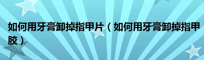 大家好,小晋来为大家解答以下问题,关于如何用牙膏卸掉指甲片,如何用牙膏卸掉指甲胶很多人还不知道,今天让我们一起来看看吧!