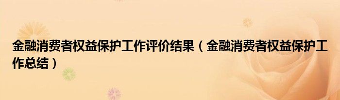 关于金融消费者权益保护工作评价结果,金融消费者权益保护工作总结这个很多人还不知道,今天菲菲来为大家解答以上的问题,现在让我们一起来看看吧!