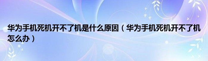 关于华为手机死机开不了机是什么原因,华为手机死机开不了机怎么办这个很多人还不知道,今天菲菲来为大家解答以上的问题,现在让我们一起来看看吧!