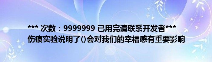 关于*** 次数:9999999 已用完请联系开发者*** 伤痕实验说明了()会对我们的幸福感有重要影响这个很多人还不知道,今天菲菲来为大家解答以上的问题,现在让我们一起来看看吧!