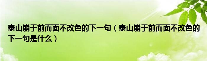 关于泰山崩于前而面不改色的下一句,泰山崩于前而面不改色的下一句是什么这个很多人还不知道,今天菲菲来为大家解答以上的问题,现在让我们一起来看看吧!