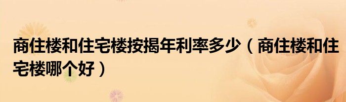关于商住楼和住宅楼按揭年利率多少,商住楼和住宅楼哪个好这个很多人还不知道,今天菲菲来为大家解答以上的问题,现在让我们一起来看看吧!
