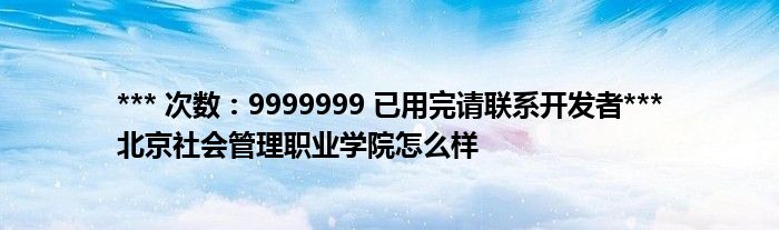 关于*** 次数:9999999 已用完请联系开发者*** 北京社会管理职业学院怎么样这个很多人还不知道,今天菲菲来为大家解答以上的问题,现在让我们一起来看看吧!