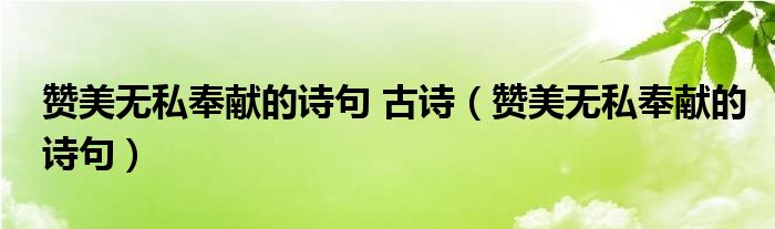 关于赞美无私奉献的诗句 古诗,赞美无私奉献的诗句这个很多人还不知道,今天菲菲来为大家解答以上的问题,现在让我们一起来看看吧!