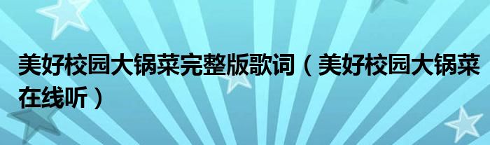 关于美好校园大锅菜完整版歌词,美好校园大锅菜在线听这个很多人还不知道,今天菲菲来为大家解答以上的问题,现在让我们一起来看看吧!