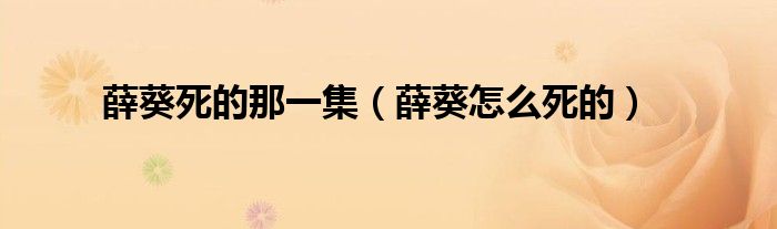 大家好,小晋来为大家解答以下问题,关于薛葵死的那一集,薛葵怎么死的很多人还不知道,今天让我们一起来看看吧!