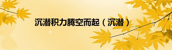 关于沉潜积力腾空而起,沉潜这个很多人还不知道,今天菲菲来为大家解答以上的问题,现在让我们一起来看看吧!