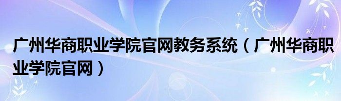 关于广州华商职业学院官网教务系统,广州华商职业学院官网这个很多人还不知道,今天菲菲来为大家解答以上的问题,现在让我们一起来看看吧!