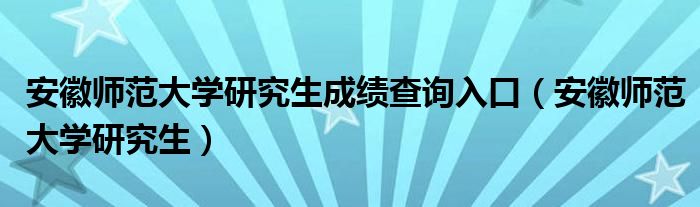 关于安徽师范大学研究生成绩查询入口,安徽师范大学研究生这个很多人还不知道,今天菲菲来为大家解答以上的问题,现在让我们一起来看看吧!