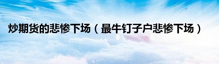 关于炒期货的悲惨下场,最牛钉子户悲惨下场这个很多人还不知道,今天菲菲来为大家解答以上的问题,现在让我们一起来看看吧!