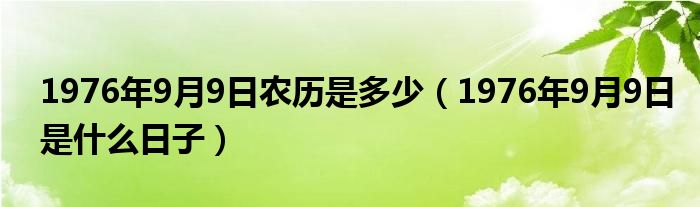 关于1976年9月9日农历是多少,1976年9月9日是什么日子这个很多人还不知道,今天菲菲来为大家解答以上的问题,现在让我们一起来看看吧!