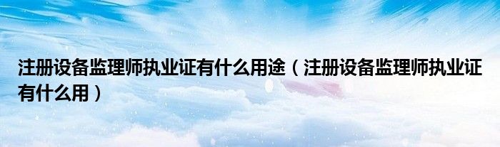 关于注册设备监理师执业证有什么用途,注册设备监理师执业证有什么用这个很多人还不知道,今天菲菲来为大家解答以上的问题,现在让我们一起来看看吧!