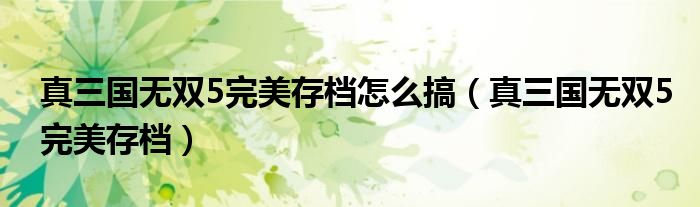 关于真三国无双5完美存档怎么搞,真三国无双5完美存档这个很多人还不知道,今天菲菲来为大家解答以上的问题,现在让我们一起来看看吧!