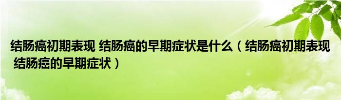 大家好,乐天来为大家解答以下的问题,结肠癌初期表现 结肠癌的早期症状是什么,结肠癌初期表现 结肠癌的早期症状很多人还不知道,现在让我们一起来看看吧!