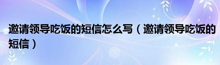 大家好,小晋来为大家解答以下问题,关于邀请领导吃饭的短信怎么写,邀请领导吃饭的短信很多人还不知道,今天让我们一起来看看吧!