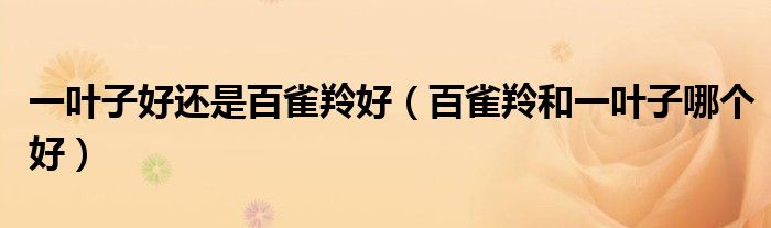 大家好,小晋来为大家解答以下问题,关于一叶子好还是百雀羚好,百雀羚和一叶子哪个好很多人还不知道,今天让我们一起来看看吧!
