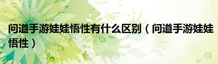 大家好,小晋来为大家解答以下问题,关于问道手游娃娃悟性有什么区别,问道手游娃娃悟性很多人还不知道,今天让我们一起来看看吧!