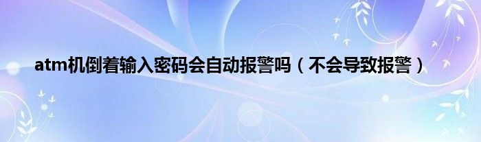 欢迎观看本篇文章,小升来为大家解答以上问题。atm机倒着输入密码会自动报警吗,不会导致报警很多人还不知道,现在让我们一起来看看吧!