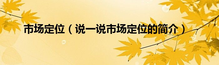 夏弥来为大家解答以下的问题,市场定位,说一说市场定位的简介,现在让我们一起来看看吧!