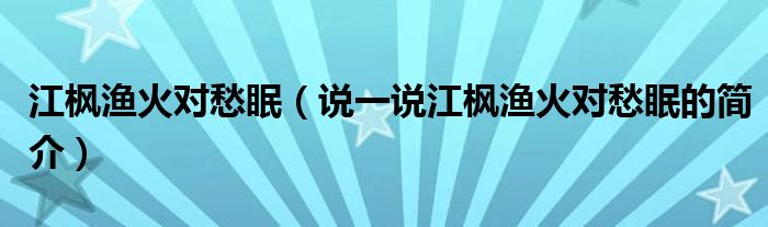夏弥来为大家解答以下的问题,江枫渔火对愁眠,说一说江枫渔火对愁眠的简介,现在让我们一起来看看吧!