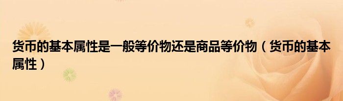 关于货币的基本属性是一般等价物还是商品等价物,货币的基本属性这个很多人还不知道,今天菲菲来为大家解答以上的问题,现在让我们一起来看看吧!