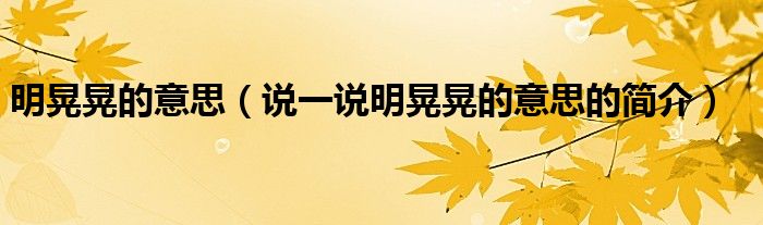 夏弥来为大家解答以下的问题,明晃晃的意思,说一说明晃晃的意思的简介,现在让我们一起来看看吧!