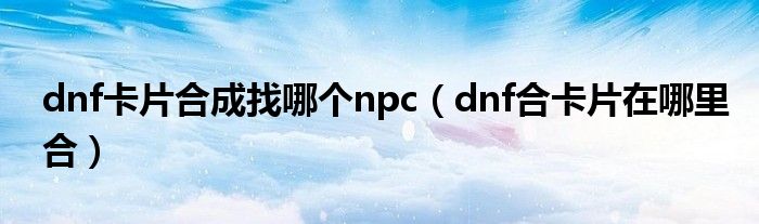 关于dnf卡片合成找哪个npc,dnf合卡片在哪里合这个很多人还不知道,今天菲菲来为大家解答以上的问题,现在让我们一起来看看吧!