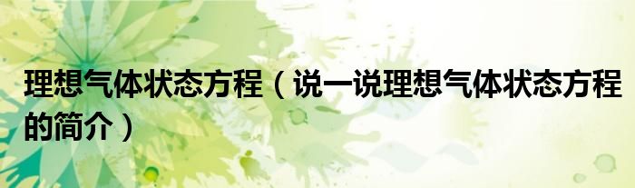 夏弥来为大家解答以下的问题,理想气体状态方程,说一说理想气体状态方程的简介,现在让我们一起来看看吧!