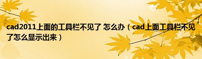关于cad2011上面的工具栏不见了 怎么办,cad上面工具栏不见了怎么显示出来这个很多人还不知道,今天菲菲来为大家解答以上的问题,现在让我们一起来看看吧!