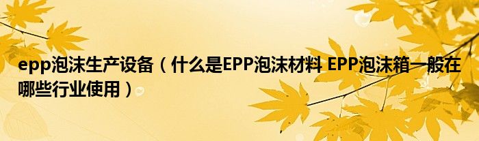 关于epp泡沫生产设备,什么是EPP泡沫材料 EPP泡沫箱一般在哪些行业使用这个很多人还不知道,今天菲菲来为大家解答以上的问题,现在让我们一起来看看吧!