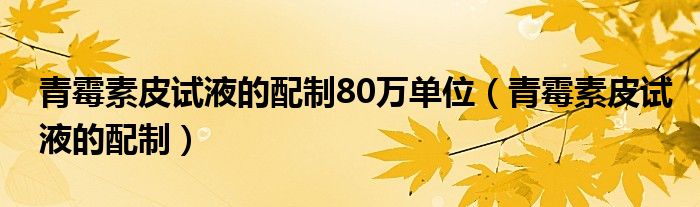 大家好,乐天来为大家解答以下的问题,青霉素皮试液的配制80万单位,青霉素皮试液的配制很多人还不知道,现在让我们一起来看看吧!