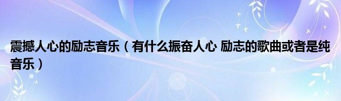 关于震撼人心的励志音乐,有什么振奋人心 励志的歌曲或者是纯音乐这个很多人还不知道,今天菲菲来为大家解答以上的问题,现在让我们一起来看看吧!