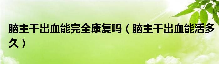 大家好,乐天来为大家解答以下的问题,脑主干出血能完全康复吗,脑主干出血能活多久很多人还不知道,现在让我们一起来看看吧!