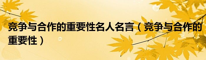 关于竞争与合作的重要性名人名言,竞争与合作的重要性这个很多人还不知道,今天菲菲来为大家解答以上的问题,现在让我们一起来看看吧!