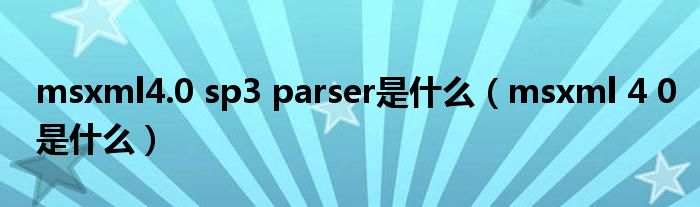 关于msxml4.0 sp3 parser是什么,msxml 4 0是什么这个很多人还不知道,今天菲菲来为大家解答以上的问题,现在让我们一起来看看吧!
