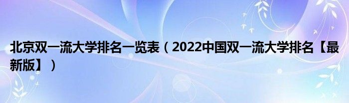 最佳答案大家好,乐儿来为大家解答以下问题,北京双一流大学排名一览表,2022中国双一流大学排名【最新版】很多人还不知道,现在让我们一起来看看吧!1、2022中国双一流大学排行榜本文到此结束,希望对你有帮助。