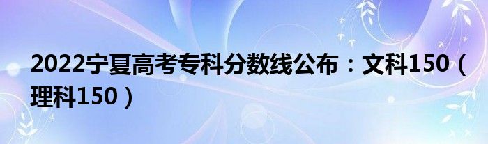大家好,乐儿来为大家解答以下问题,2022宁夏高考专科分数线公布:文科150,理科150很多人还不知道,现在让我们一起来看看吧!