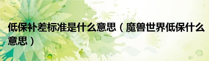 低保补差标准是什么意思(魔兽世界低保什么意思)
