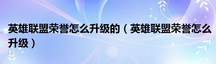关于英雄联盟荣誉怎么升级的,英雄联盟荣誉怎么升级这个很多人还不知道,今天菲菲来为大家解答以上的问题,现在让我们一起来看看吧!