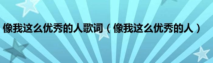 关于像我这么优秀的人歌词,像我这么优秀的人这个很多人还不知道,今天菲菲来为大家解答以上的问题,现在让我们一起来看看吧!