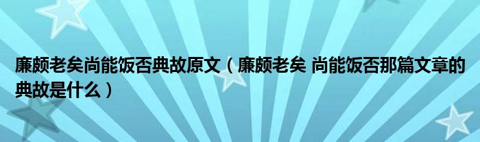 关于廉颇老矣尚能饭否典故原文,廉颇老矣 尚能饭否那篇文章的典故是什么这个很多人还不知道,今天菲菲来为大家解答以上的问题,现在让我们一起来看看吧!