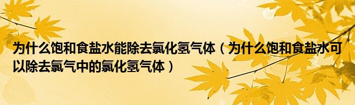 关于为什么饱和食盐水能除去氯化氢气体,为什么饱和食盐水可以除去氯气中的氯化氢气体这个很多人还不知道,今天菲菲来为大家解答以上的问题,现在让我们一起来看看吧!