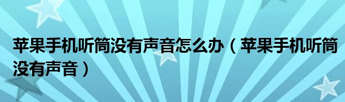 关于苹果手机听筒没有声音怎么办,苹果手机听筒没有声音这个很多人还不知道,今天菲菲来为大家解答以上的问题,现在让我们一起来看看吧!